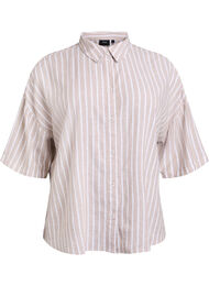 Skjorte med krave, gennemgående knaplukning, korte ærmer og løs pasform. Skjorten er fremstillet af hør og viskose, der giver en let struktur og naturlig åndbarhed.