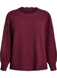 Feminin strikbluse med rund halsudskæring og fine bølgede kanter, som går igen ved både hals og ærmeafslutninger. Modellen har en komfortabel pasform med lange ærmer og ribkant forneden, der skaber en afslappet silhuet. Materialet er blødt og strækbart og består af 94% genanvendt polyester.