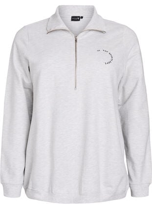 Blød og behagelig sweatshirt i en bomuldsblanding med stretch og afslappet pasform. Modellen har en høj hals med kort lynlås, som giver mulighed for justering af udseendet, og en sporty broderet detalje på brystet. Sweatshirten har lange ærmer og afsluttes med ribkanter ved ærmer og bund.
