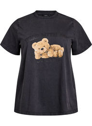 T-shirt i blød, økologisk bomuld med regulær pasform og et sødt bamsemotiv på brystet. Modellen har rund hals, korte ærmer og en vasket finish, der giver et afslappet look.