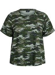 T-shirt med rund halsudskæring, korte ærmer med et lille, fast opsmøg og regulær pasform. T-shirten er lavet i en strækbar bomuldskvalitet og fås i varianter med leopard- og camouflageprint.