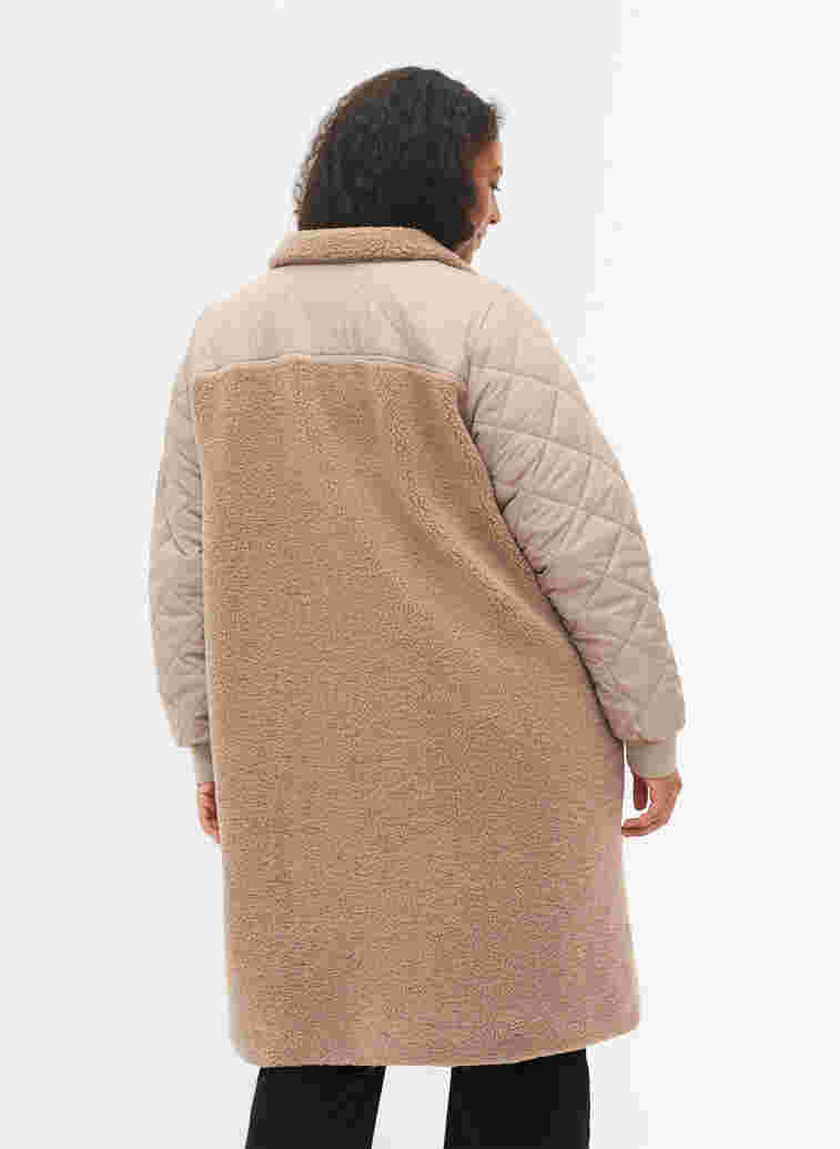 To tendenser, vi ser igen, når det kommer til sæsonens overtøj, er quilt og teddy. Både hver for sig men også sammen. De to tendenser supplerer hinanden rigtig godt, fordi de forskellige materialer og stilarter har samme funktioner men alligevel forskellige udtryk. Sæt jakken sammen med et traditionelt outfit med jeans og strikbluse for at få et sandt efterårslook.
