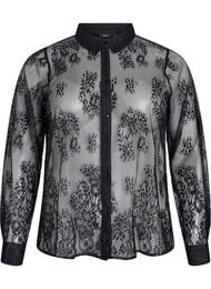 Gennemsigtig blondeskjorte med elegant blomstermønster og regulær pasform. Skjorten har klassisk krave, knaplukning foran og lange ærmer med manchet.