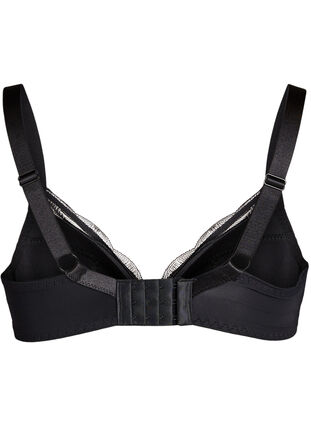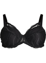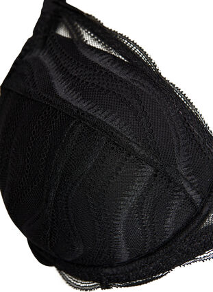 Bøjle-bh med vatterede skåle og feminine blonder på skålene. Bh’en har en buet front, der former og skaber en glat og naturlig silhuet. De brede, justerbare stropper har et U-ryg-design, som holder dem på plads og forbedrer støtten til barmen. De høje sidestykker giver ekstra støtte, og bagpå er bh’en fremstillet i microfiber med mesh-lining.