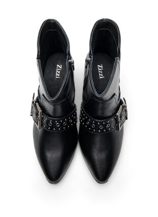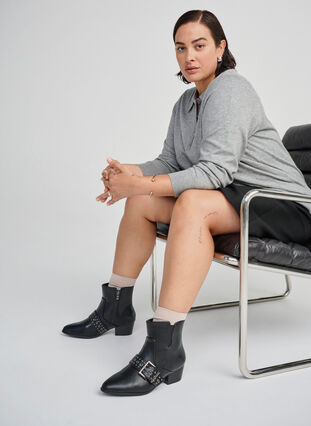 Wide fit - Ankelstøvle i læder med rem og nitter