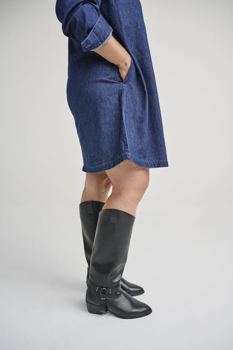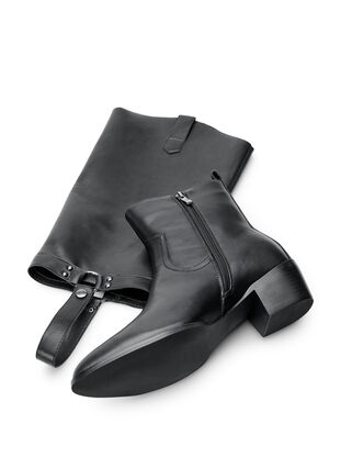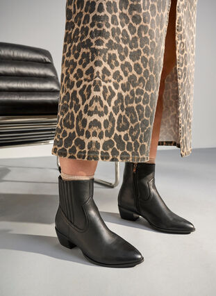 Lang støvle i wide fit med aftageligt skaft, som nemt kan tilpasses forskellige looks – fra knæhøje til elegante ankelstøvler. Støvlen har et tidløst design med elastiske paneler på ydersiden, der sikrer en god pasform og fleksibilitet, mens en lynlås på indersiden gør det nemt at tage den af og på. Det aftagelige skaft har ekstra vidde og kan nemt fjernes og sættes fast med et spænde og metalring, som sikrer, at skaftet sidder godt fast.