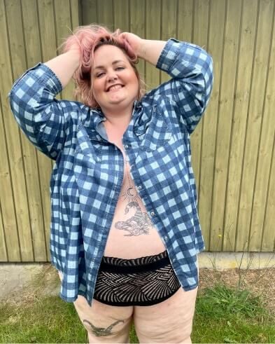 Jeg hedder Nanna, er 31 år, bor sammen med min kæreste og min datter på 10, og til daglig arbejder jeg som influencer på Instagram. Her har jeg lidt gjort det til min ‘mission’ at prøve at inspirere andre plus-size kvinder til ikke at gemme sig væk - hverken fra farver eller dårlig pasform i tøj. Her mener jeg altså, at vi ikke skal gemme os væk i store sorte sække. Sort kan være super stilet, så længe det er et valg, og ikke for at gemme sig væk eller fordi ”sort slanker”.