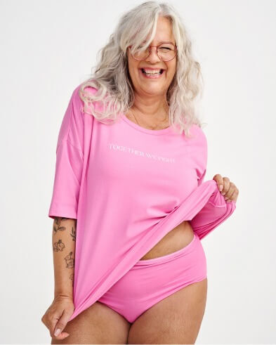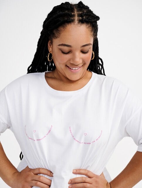Hos Zizzi støtter vi brysterne – i alle de former, farver og størrelser. Uanset hvem de sidder på. Derfor donerer vi penge til Støt Brysterne, hver gang du køber en vare fra vores kollektion, som vi har lavet specielt til formålet. På den måde kan du også være med til at støtte kampen mod brystkræft. I år finder du et udvalg af undertøj og t-shirts med den velkendte lyserøde sløjfe. Du kan købe varerne her på siden fra den 22. september.