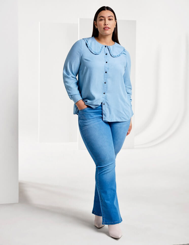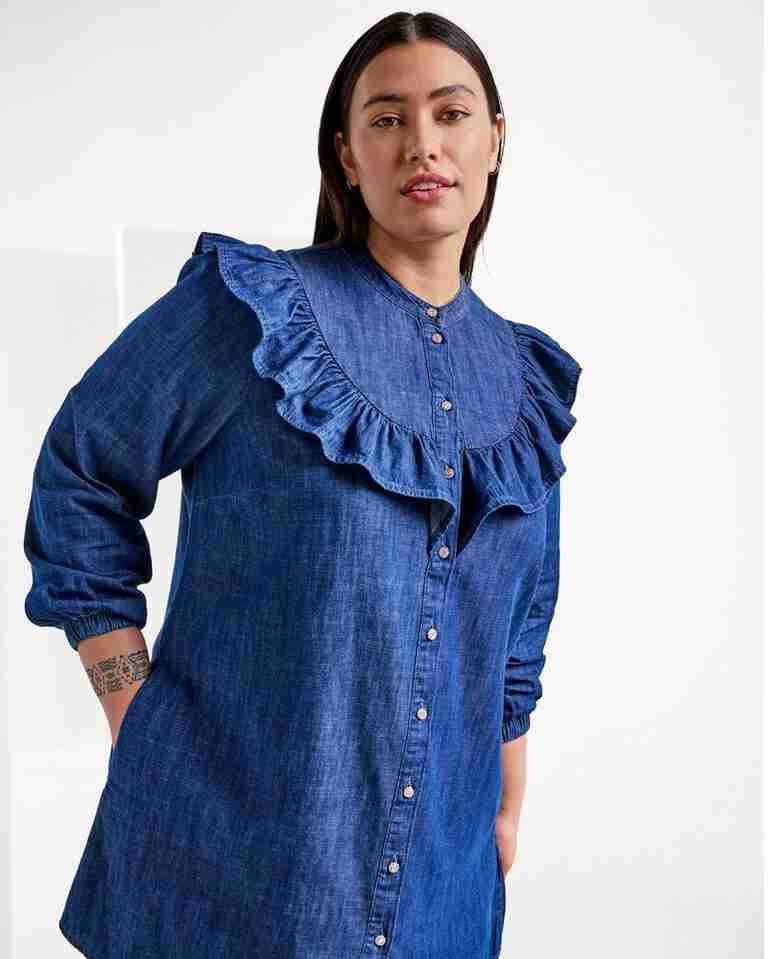 Men denim kan også være blødt. Både i udtryk og materiale. Denimstyles i Tencel™, en lyocellfiber er både blødt og falder smukt på kroppen. Derfor er materialet perfekt til kjoler og skjorter.
